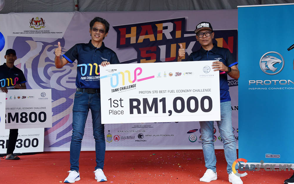 At the finish line, Abu Bakar Bin Mohd Yusoff emerged victorious, achieving an incredible 3.48L/100km, equivalent to 31.61km per litre. His result translates to a theoretical range of 1,580km from a single 50-litre tank — an impressive testament to the Proton S70’s engineering. Abu Bakar received RM1,000 in cash for his achievement.