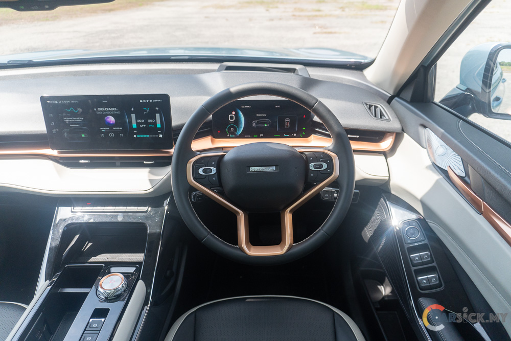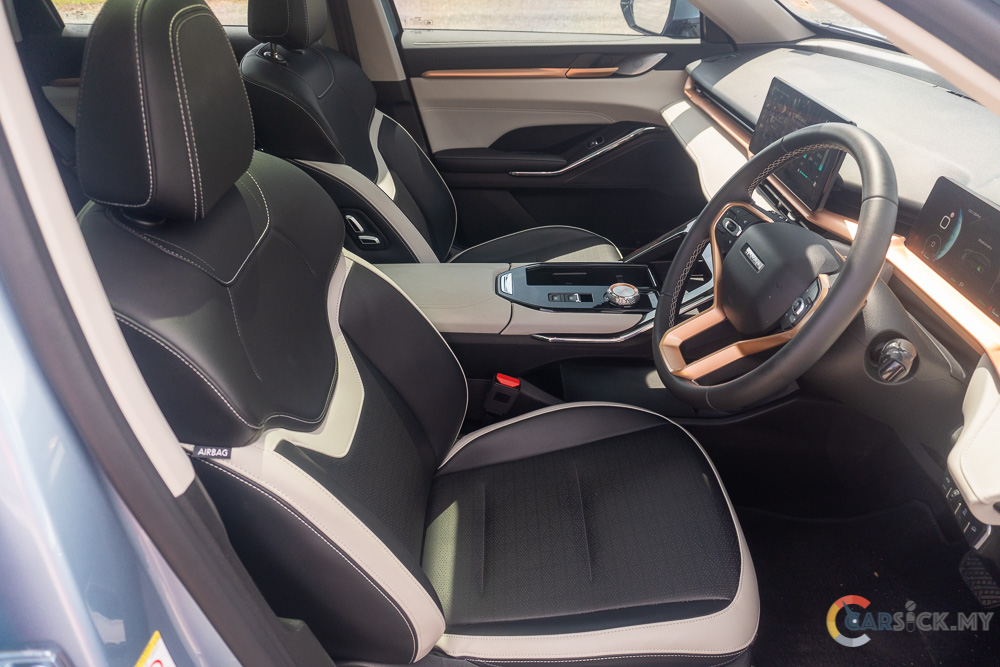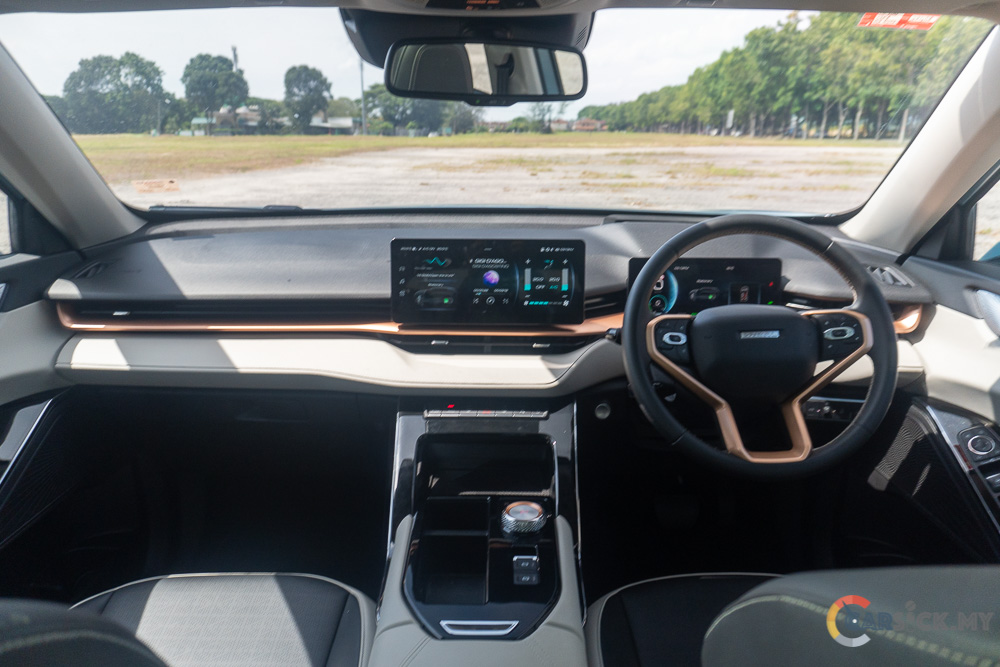 The H6’s powertrain is capable and handles various road conditions with ease. In city driving, keeping up with traffic is effortless, though the engine can feel lazy under heavy demand, even in Sport mode. The hybrid system transitions smoothly between electric and internal combustion power, with minimal vibration. Fuel economy is good: during my review, I averaged 6.5 L/100 km in city driving. Without the hybrid, consumption would rival Proton’s 3-cylinder engines. The 2-speed transmission ensures smooth acceleration without noticeable gear changes.