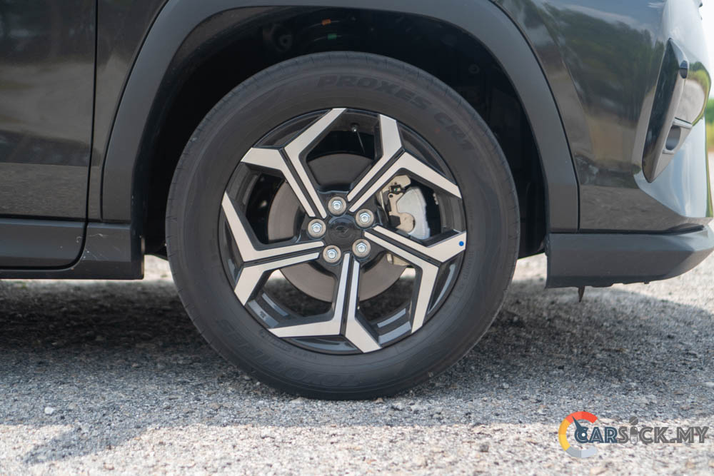 At the rear, the Traz has a sense of familiarity. From a distance, the taillights resemble those of the Lexus NX. This is somewhat expected, as the Traz was co-developed with Toyota, so there’s definitely some Toyota DNA in its design. The taillights look sharp and fit well with the overall design. Since this is the top-of-the-line H variant, it even gets an automatic tailgate, which adds convenience and improves usability. Lastly, the Traz rides on a set of sporty-looking 17-inch rims wrapped in 215/60 R17 tyres—and they do look good.